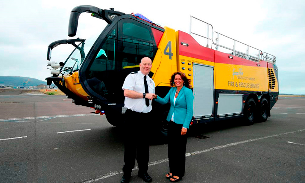 El Grupo ITURRI, dedicado a la fabricación de prendas, equipos y vehículos para los sectores de Protección Industrial, Emergencias, Defensa y Sanidad, ha entregado al servicio de bomberos del Aeropuerto George Best Belfast City el vehículo contraincendios T6x6 con capacidad extintora de 11.500 litros de agua, 1.650 litros de espumógeno y 250 kg de polvo químico.